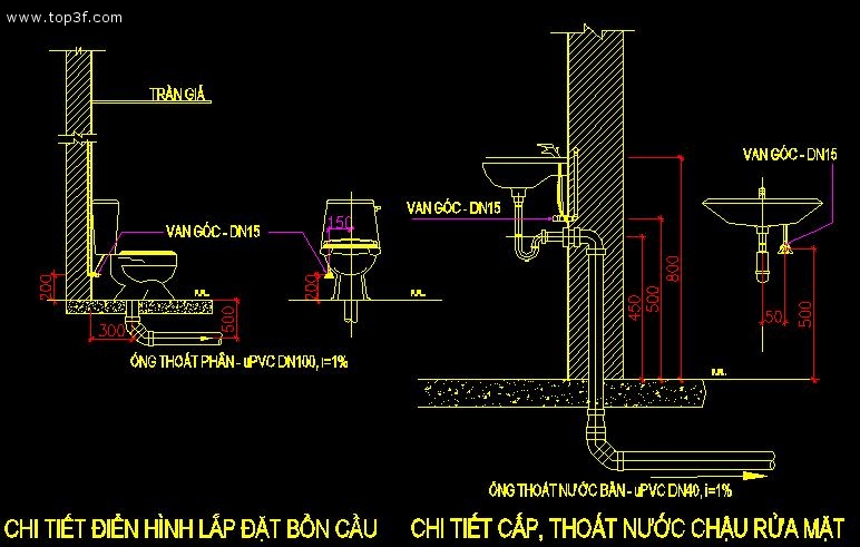Kinh nghiệm thiết kế cấp thoát nước trong nhà - Chi tiết lắp đặt nhà vệ sinh
